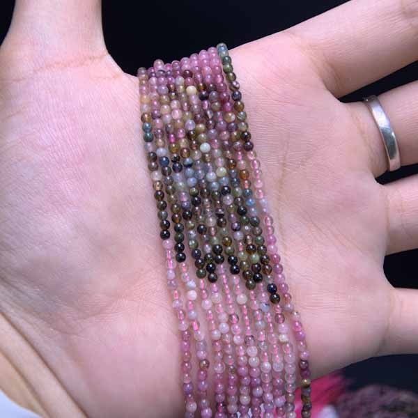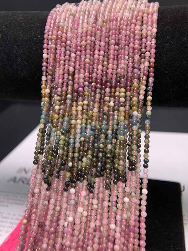 Tourmaline round bead gradient long chain (2mm) semi-finished. 39cm