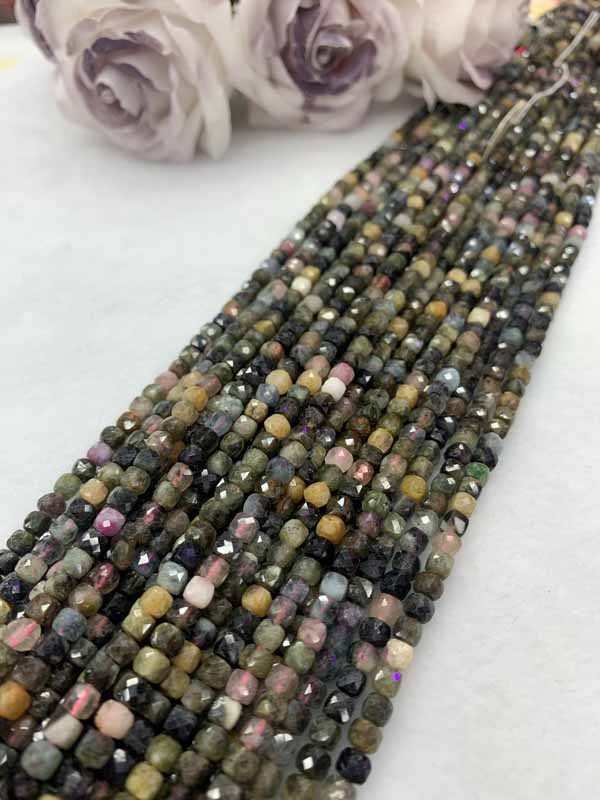 Tourmaline sugar cube 4x4mm, long chain 38cm