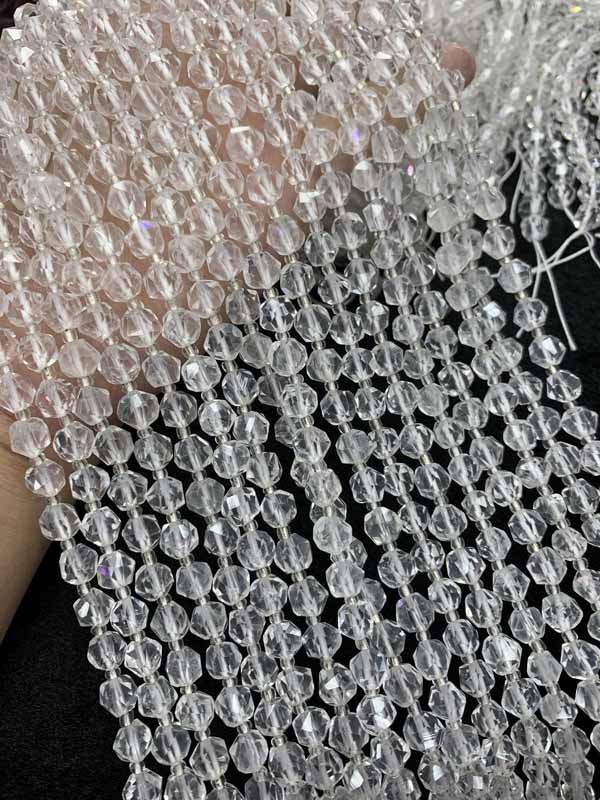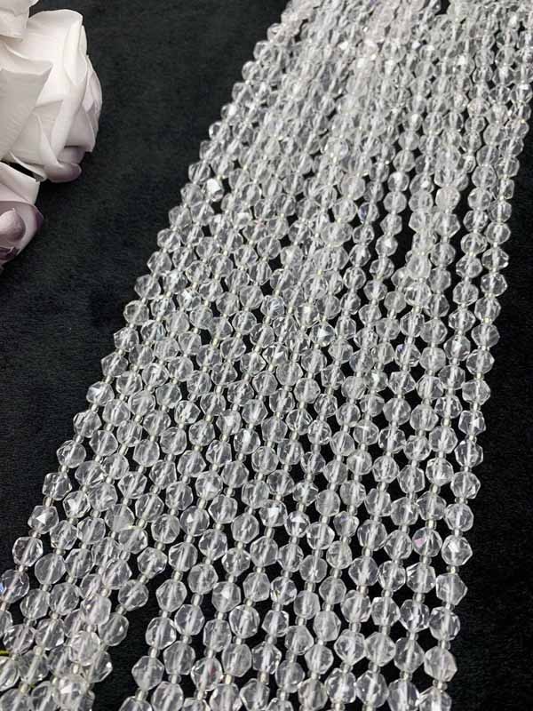 White crystal non-faceted beads 8mm long chain 38cm