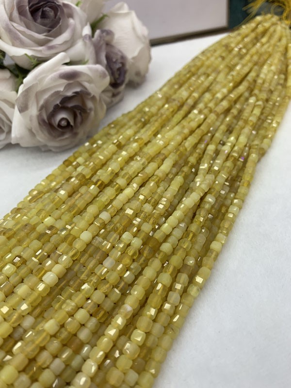 Yellow Opal Cube Long Chain calms emotions and balances body and mind.