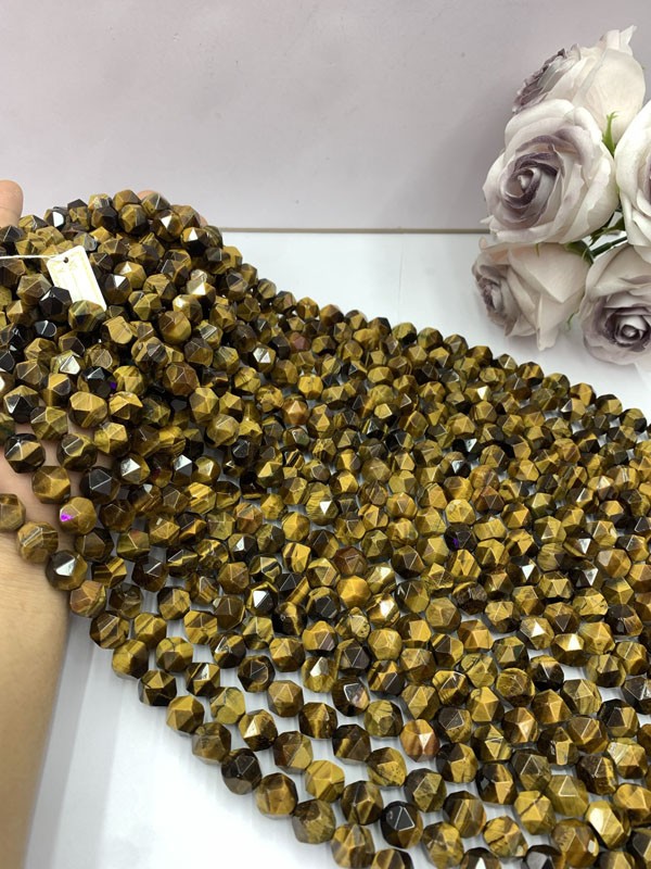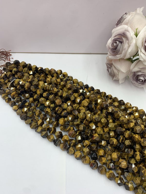 Yellow Tiger Eye Faceted Long Chain calms the mind and balances emotions.